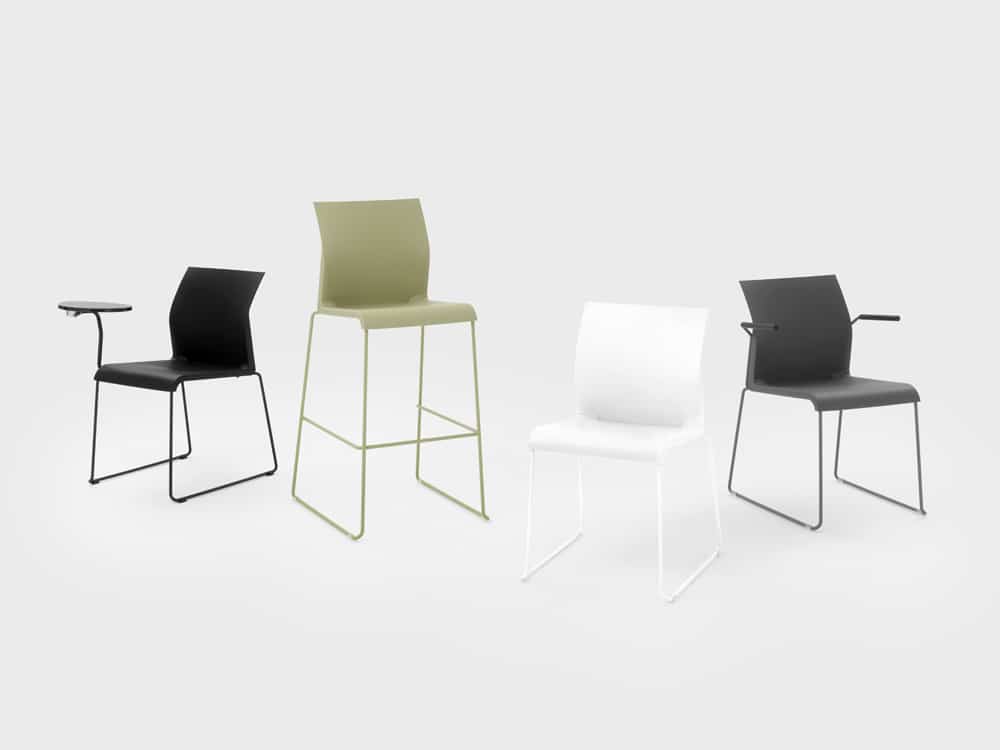 GhếRion có thể xếp chồng, có hoặc không có tay vịn và bảng viết